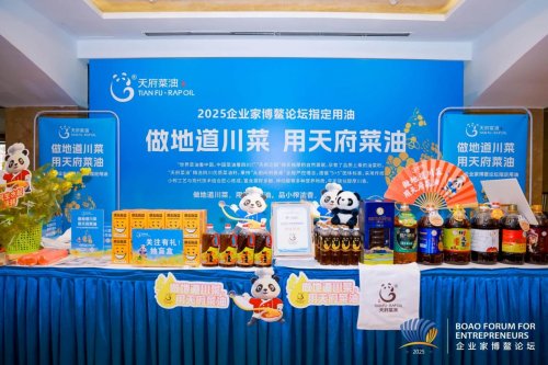 12月2日至5日,2025企业家博鳌论坛在海南博鳌举办,四川省级区域公共品牌“天府菜油”凭借其高品质成为本届论坛指定用油,并携旗下系列菜油产品及文创精品亮相现场。