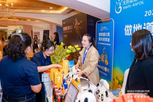 2025企业家博鳌论坛以“链接全球,引领未来:‘十五五’新机遇”为主题,包括世界500强、中国500强和行业领军企业家在内的各界嘉宾汇聚一堂,共话“十五五”发展新机遇,共探新发展格局下企业发展的新路径、新作为。“天府菜油”作为重要品牌代表,不仅融入主论坛等现场环节,更在会场专设展区,集中展示“天府菜油”系列菜油产品与文创产品,吸引众多与会嘉宾驻足交流、互动体验。展区特别策划开展的“盲盒抽奖”活动准备了1000份精美礼品,涵盖菜籽油、文创帆布袋、雨伞、扇子、镜子、风车等,持续掀起参与热潮。